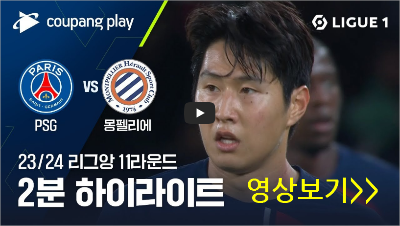 [쿠팡플레이 이강인 리그앙 데뷔골 파리 몽펠리에전 하이라이트(골장면 40초)]