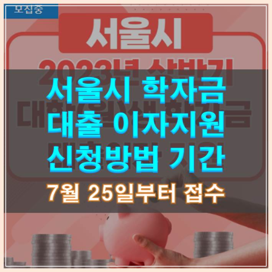 서울시에서는 고비용의 대학 등록금 및 학자금 대출로 인해 경제적인 부담을 느끼는 청년들에게 도움을 주고자 대출이자 지원사업을 진행합니다. 서울지역 대학생, 대학원생에게 한국장학재단으로부터 대출받은 일반 상환학자금 및 취업 후 상환학자금에 대한 대출이자를 지원합니다. 7월 25일부터 접수를 시작하니 신청자격이 되시는 분들을 꼭 신청하시길 바랍니다. 신청은 온라인 접수만 가능합니다.